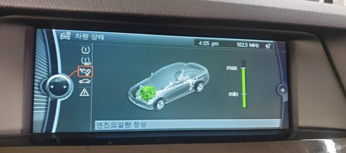 다행히 주입 후에도 엔진오일 초과 경고가 뜨지 않는다. 그리고 N55 엔진은 고 RPM 사용 시 약간 씩 오일을 소모하는 성향이 있어서 웬만하면 오일 레벨은 'max'선까지 맞춰주는 게 좋다.