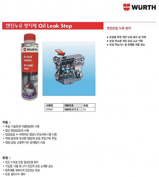 #엔진오일, #누수, #누유, #오일쿨러, #스탑릭, #씰러, #뷔르트, #방지제, #wurth, #leak, #오일팬, #헤드