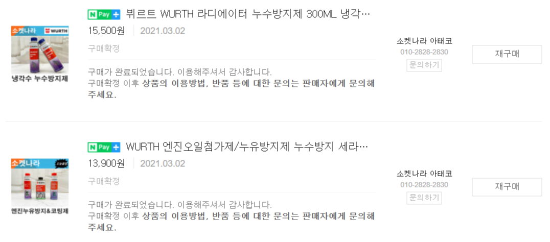 내 돈 주고, 내가 샀다. 필자 같은 취미 블로거에게 금전적 지원을 해 줄리 없다. 누수 방지제와 엔진오일 누유 방지제도 함께 구입했다.