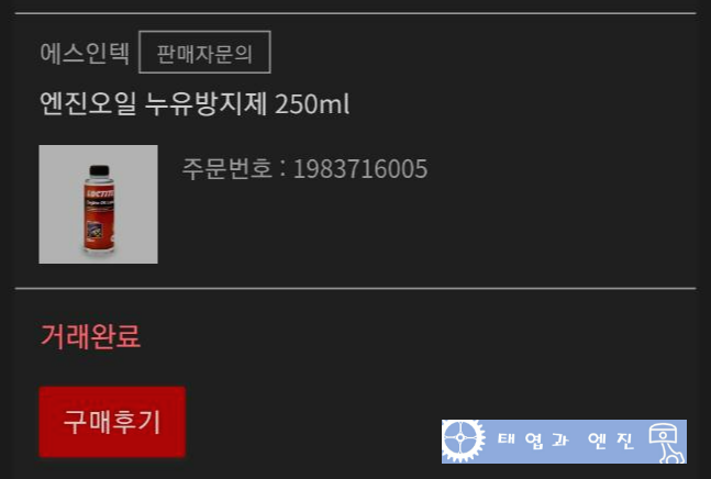 내 돈 주고, 내가 샀다. 필자 같은 취미 블로거에게 금전적 지원을 해 줄리 없다. 누수 방지제와 엔진오일 누유 방지제도 함께 구입했다.