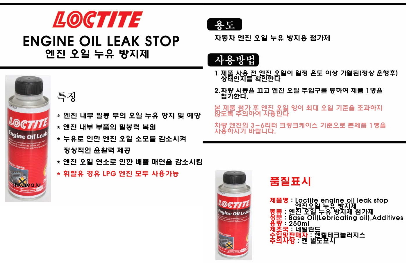 3. 상품 소개 - "록타이트 엔진오일 누유방지제"