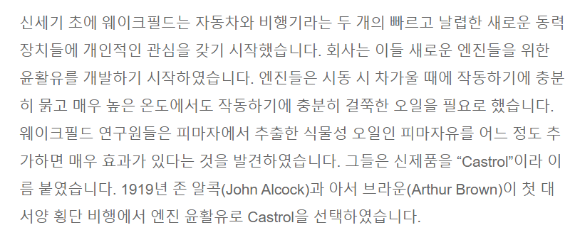 캐스트롤(Castrol)은 1919년 최초 대서양 횡단 비행에 사용된 윤활유로 근본 있는 역사를 가진 브랜드다.