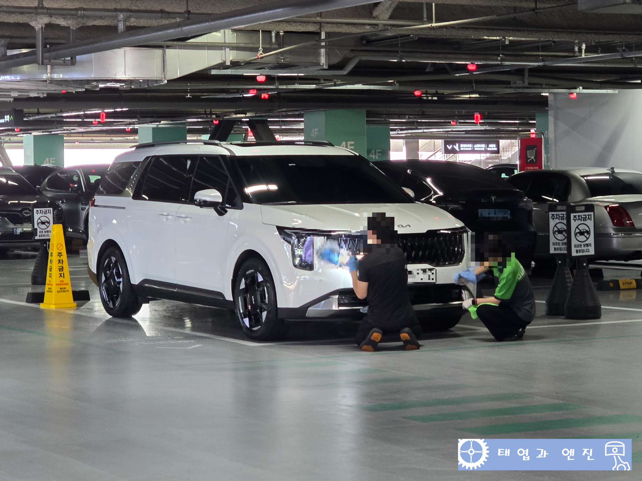 출차 전 다시 LED를 비춰가며 꼼꼼하게 마무리하신다. 다음에 한 번 손세차도 맡겨 볼 생각이다.