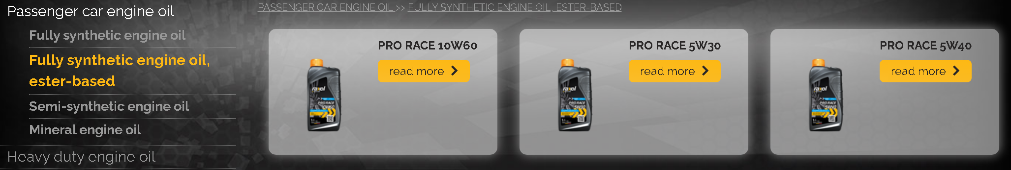 Raxol 브랜드의 장점은 전용 오일파인더 웹을 제공한다는 점이다. 전 세계 다양한 브랜드와 차종을 검색할 수 있고, 해당 차종에 적합한 오일류와 사용량을 알려준다. 엔진오일뿐만 아니라 미션오일 등 다양한 차종별 정보를 제공한다.
