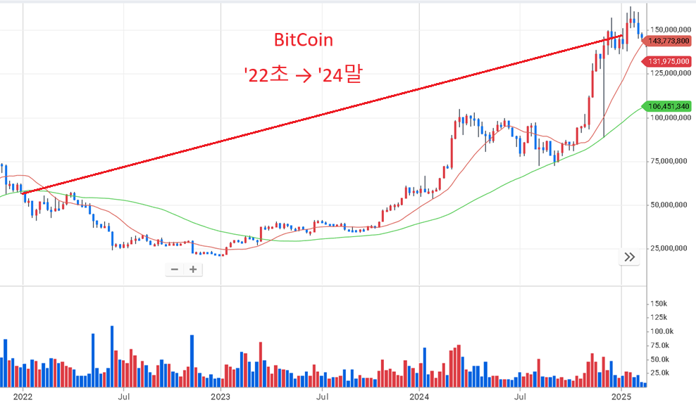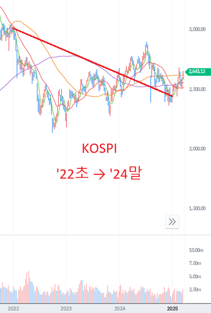 코로나 팬데믹 시기에 대출을 일으켜 매수했던 국내 주식들은 모두 매도하여 미국 주식과 가상화폐를 매수했다. 전 세계 '23년 한 해 동안의 금리인상 기조가 끝난 '24년 다른 자산들의 반등과 달리 국내 주식만 하락을 지속했다.