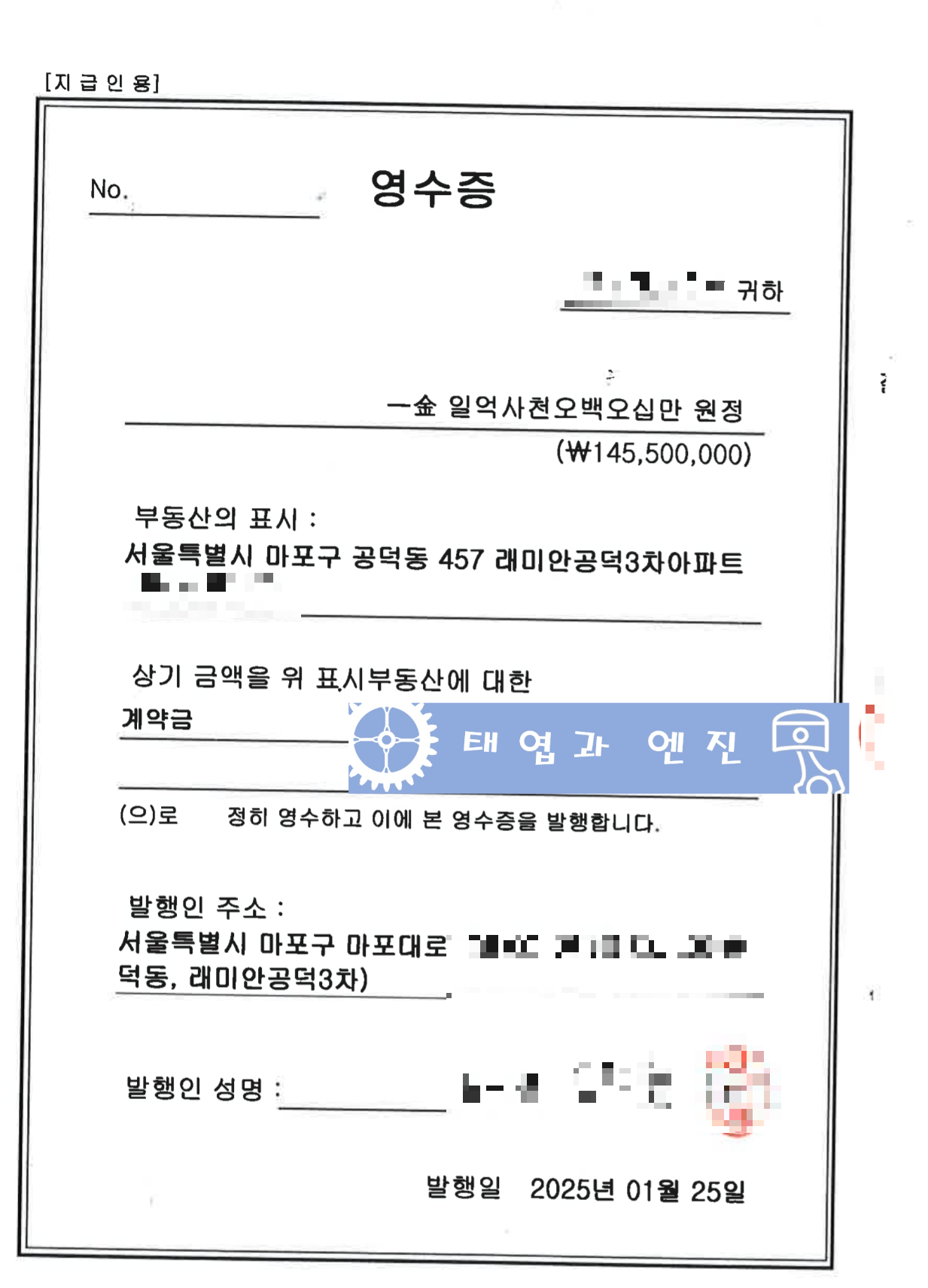 '24년 말 이사를 결심하고, 분양받아 2년 실거주를 마친 광명 아파트를 매도했다. 그리고 '25년 1월 마포구 공덕동의 24평 아파트를 14억 5,500에 매수 계약을 체결했다.