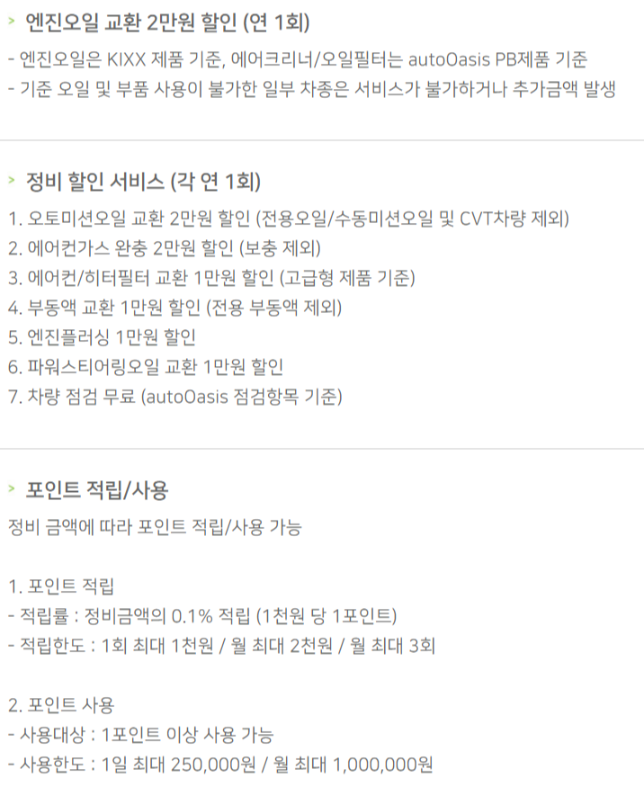 대기업 체인 정비소 오토오아시스에 대한 경험은 생각보다 괜찮았다. 기본 점검과 고장 증상에 대한 상담이 친절했고, 지나치게 저렴한 호환 부품은 사용하지 않는 편이었다. 정품을 쓰거나 혹은 정품과 품질이 동등한 독일 산 OEM 브랜드를 사용한다고 한다. 차량 제조사만큼은 아니지만, 어느 정도의 사후지원도 제공받을 수 있기 때문에 다양한 제휴 할인을 활용한다면 종합적으로 비용 대비 만족도는 괜찮다고 평가한다.